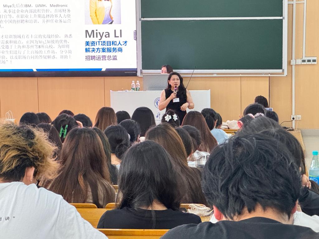 求职简历是职场敲门砖,一份优质简历能让求职者在众多竞争者中脱颖而出。为帮助金融、财管、旅游专业学生掌握简历撰写核心技巧,精准匹配企业用人需求,近日,商学院辅导员吴越老师特别邀请美钛中国人力资源专家 Miya LI 女士,开展 “简历优化与求职竞争力提升” 专题指导课,为有求职意向的学生带来行业一线的实操性指导。课程伊始,吴越老师对 Miya LI 女士的到来表示热烈欢迎,并介绍了其丰富的职场经验。作为美钛中国人力资源核心成员,Miya LI 深耕人才招聘多年,熟悉行业用人标准与简历筛选逻辑。Miya LI 女士以 “HR 视角下的简历筛选逻辑” 为切入点,开篇点明简历撰写的核心原则:“企业筛选简历平均时长不足 30 秒,需在短时间内突出核心竞争力,实现‘人岗匹配’的快速传递。” 她结合美钛中国招聘实例,详细拆解了简历 “基本信息、教育背景、实践经历、技能证书、项目成果” 五大核心模块的优化技巧,强调 “简洁明了、重点突出、数据支撑、行业适配” 四大关键要素。